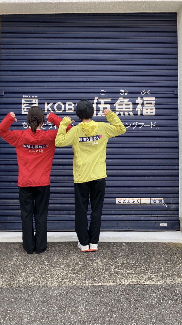 を着用します。伍魚福ジャンパー。略して「ゴギョジャン」と呼んでいます。