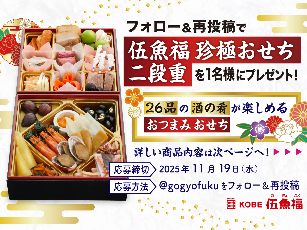抽選で1名様に「伍魚福珍極おせち二段重」をプレゼント🎁✨