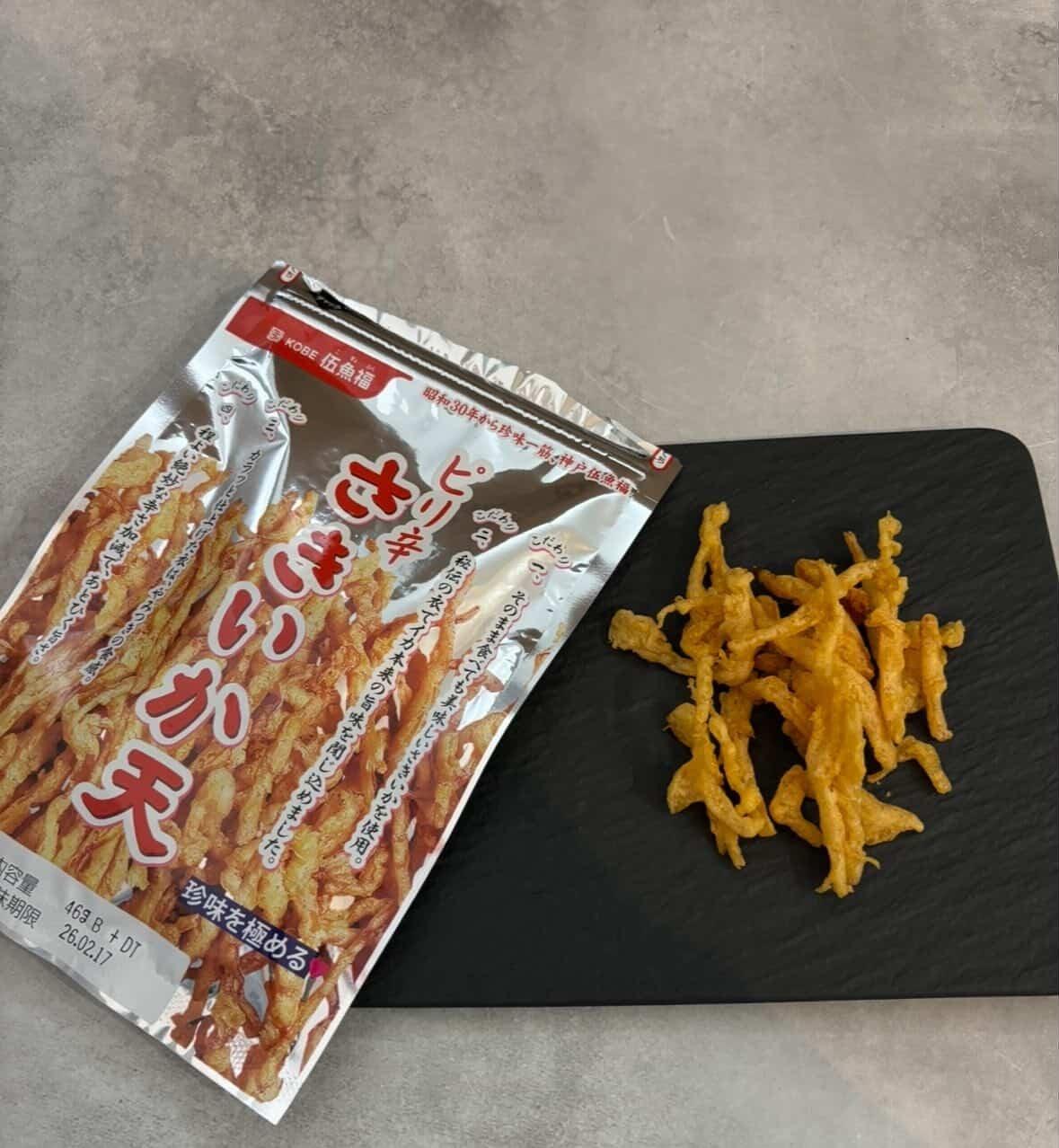 ピリ辛さきいか天。 家族で大好きなので、青空桜の元、いつもと違う雰囲気で楽しみたいです!